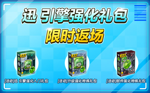 同时,商店内“[活动]迅 引擎强化入门礼包”、“[活动]升级强化特殊礼包”、“[活动]部件强化特殊礼包”在4月23日05:59前限时返场,切勿错过!