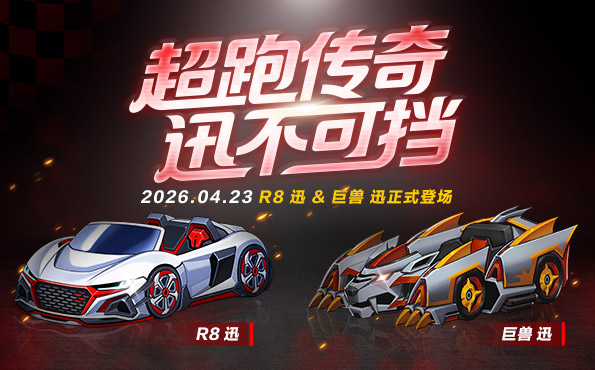 超跑传奇,迅不可挡,《跑跑卡丁车》“R8 迅”、“巨兽 迅”即将在4月23日正式登场! 而在本次4月16日的版本更新后,[欢乐BOSS战]限时开放,“机器人蓝蓝(无限制)”将作为本次迪斯欧德金盒的奖励登场,感兴趣的车手千万不要错过哦~