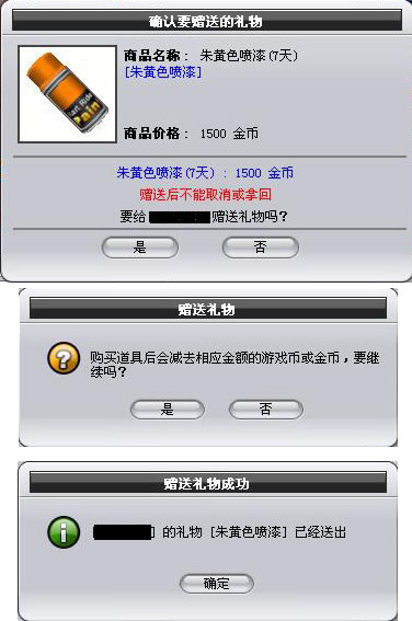 2、在弹出的窗口中确认您要赠送的礼物以及价格,并填写接收人、寄语以及您的游戏用户密码。